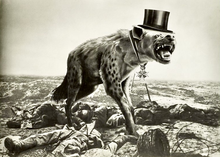 In transforming the hyena’s reality into allegory, Heartfelt entangles the reality of the battlefield and the reality of the capitalists while at the same time condemning that entanglement. Thus particular photo-montage documents visually the reality of the social situation by demonstrating it gruesome character. Through deixis, they rhetorically bring a complex, entangled field of social relationships to a singular moment of ‘presence’.