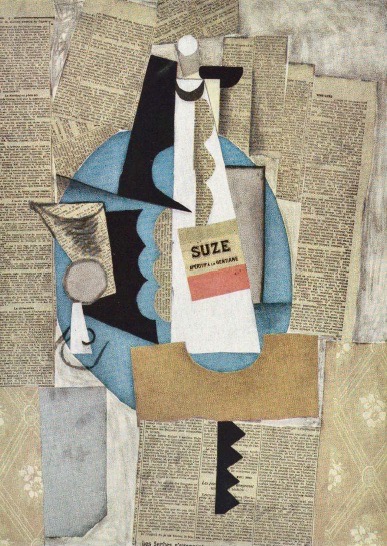 Schwitters’ work is a pure instance of collage. Picasso displays a collage sensibility in his emphasis on the material textures of objects and their references to their past lives. However, he sets the material immediacy of his collage elements off against the representational impulses of the picture plane. In Picasso’s ‘La Suze’ (1912), for example, the layering of paper strips, newsprint, wallpaper and a bottle label is similar to the celebration of quotidian detritus in Schwitters’ ‘Aufruf’ (1919).